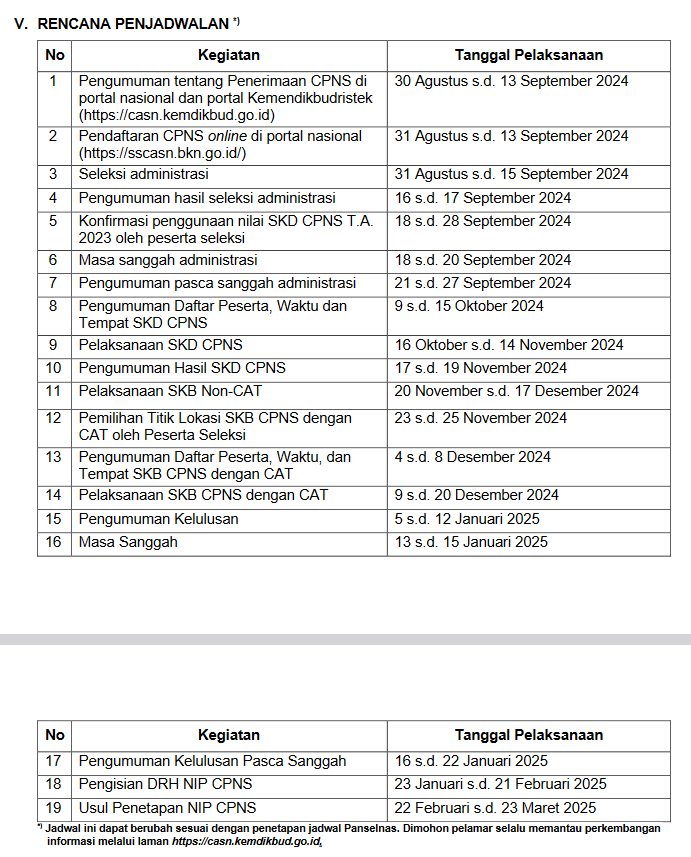 Surat Plt. Kepala Badan Kepegawaian Negara Nomor 5419/B-KS.04.01/SD/K/2024 tanggal 13 Agustus 2024 tentang Jadwal Seleksi Pengadaan CPNS Tahun Anggaran 2024.